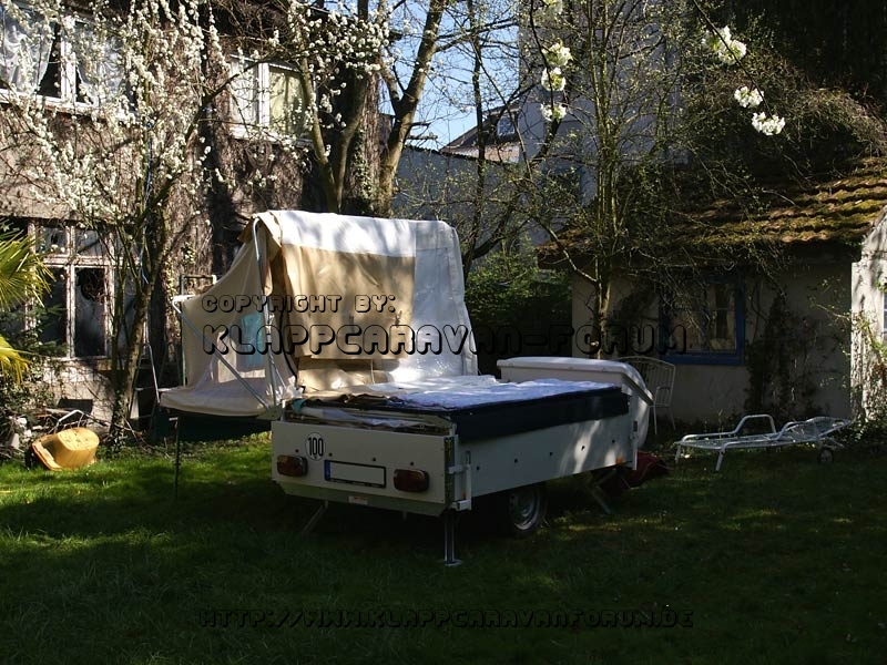 Aufbau Wagen ohne Vorzelt - Linke Seite aufgeklappt.