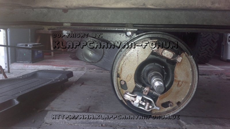 Trigano Achse fertig montiert bis auf die Trommeln und Felgen eingebaut.