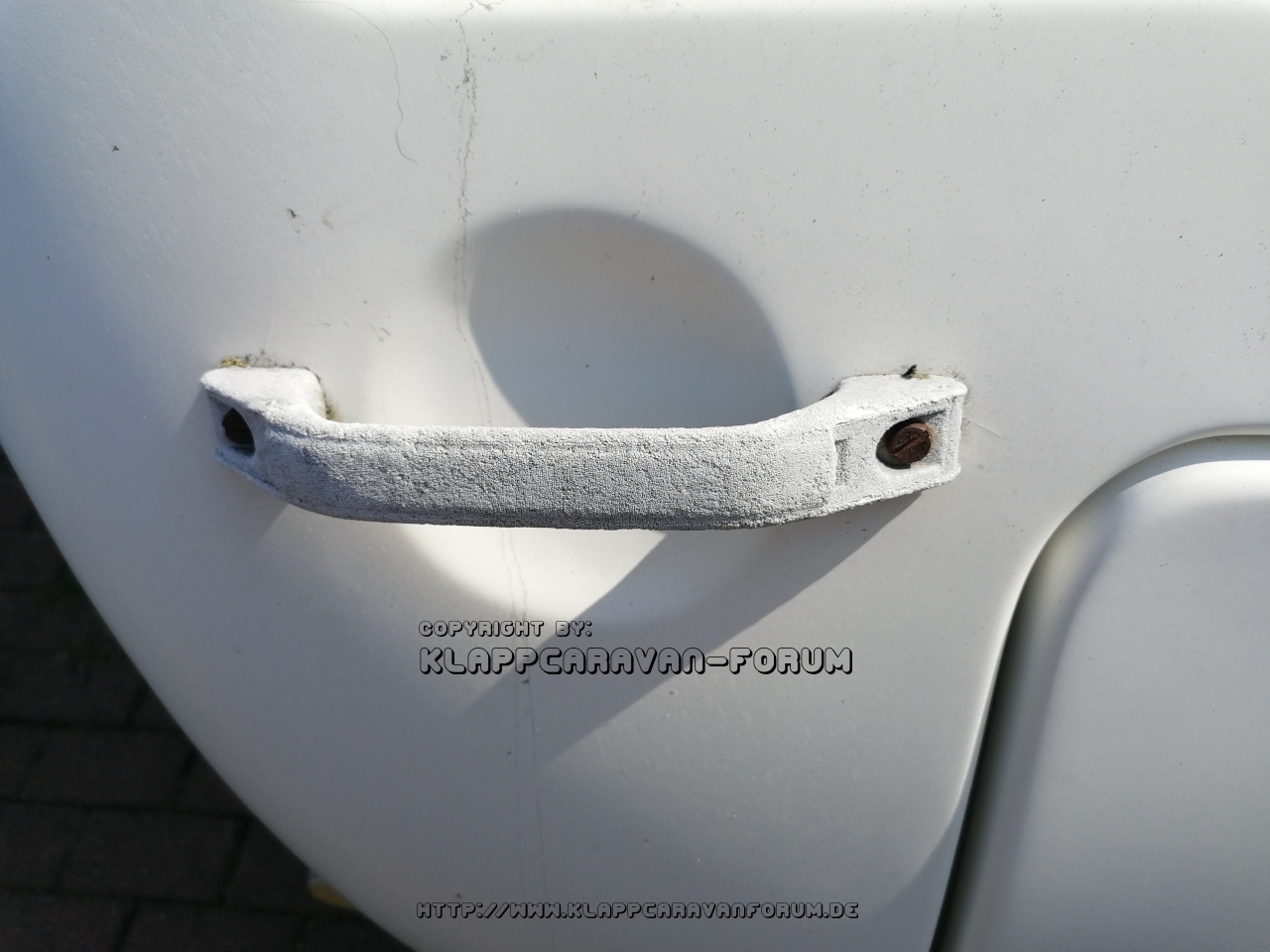 Wie sind die Griffe eigentlich im Heck befestigt? Durch die Lüftungsklappe vom Kühlschrank hab ich die glatte, innen vorgesetzte Holz-Innenwand ertastet, aber keine Muttern.