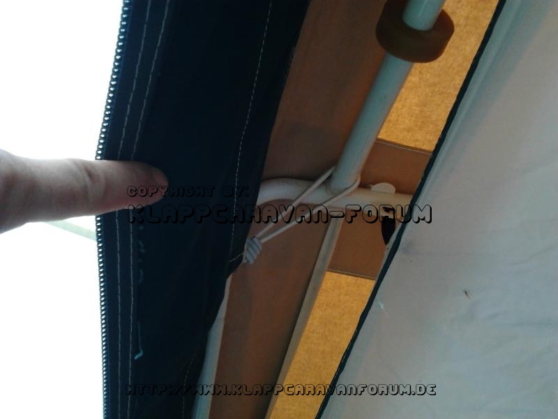 Die Innenzelthaken schnell in die Ösen des Sonnensegels gesteckt und diese über die Öffnungen fürs Vorzelt am Gestänge angeklippt