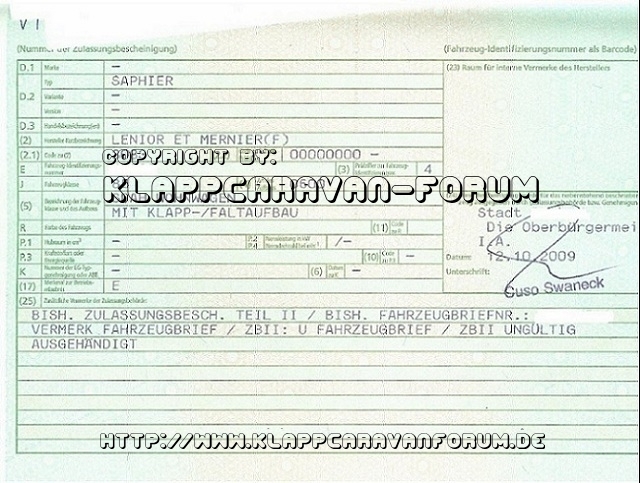 Casita Saphier - Fahrzeugschein